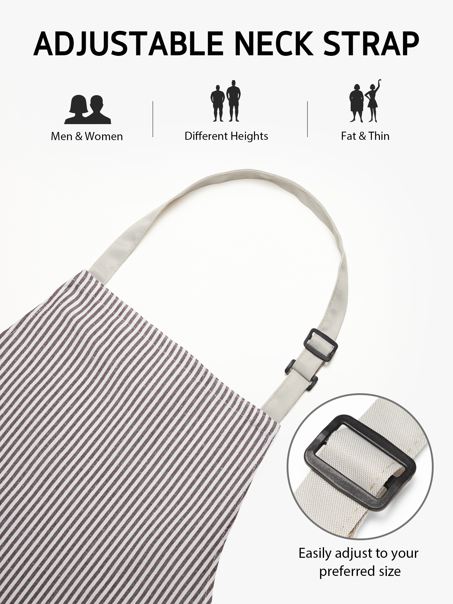 • Comfortable and adjustable – Our aprons for women and men are designed to fit people of different sizes and shapes. With fully adjustable neck and waist straps, you can find the perfect fit for optimum comfort and functionality.